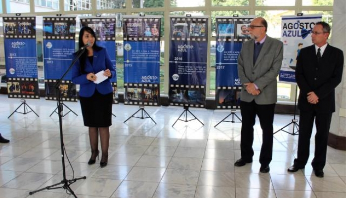 Pouco antes da sessão plenária na Assembleia Legislativa do Paraná, a deputada estadual cantora Mara Lima (PSDB) fez a abertura da exposição Agosto Azul 2017, a campanha incentiva a paternidade responsável com o slogan ‘Pai, seja presente!’, no espaço Cultural da Casa de Leis, nesta quarta-feira (02/08), que ficará abe