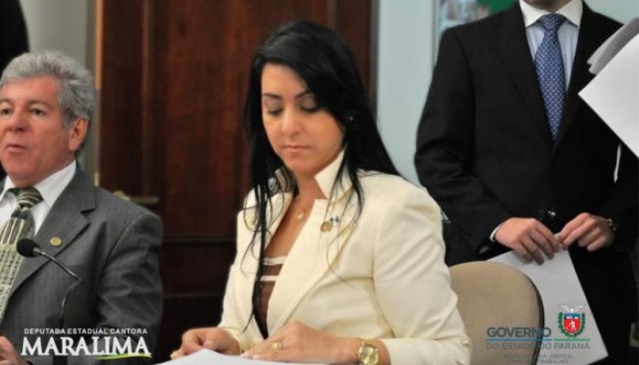 A Presidente da Comissão de Defesa dos Direitos da Mulher da Assembleia Legislativa do Paraná, deputada estadual cantora Mara Lima, comemora a sanção do projeto de lei que institui o Programa de Cooperação e Código Sinal Vermelho no Paraná.