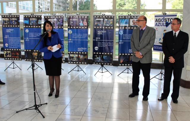 Pouco antes da sessão plenária na Assembleia Legislativa do Paraná, a deputada estadual cantora Mara Lima (PSDB) fez a abertura da exposição Agosto Azul 2017, a campanha incentiva a paternidade responsável com o slogan ‘Pai, seja presente!’, no espaço Cultural da Casa de Leis, nesta quarta-feira (02/08), que ficará aberta para visitação até o dia 31 de agosto, no horário das 9 às 18 horas. A exposição conta com cartazes que apresentam os temas abordados em cada edição da campanha, que é realizada desde 2012.
