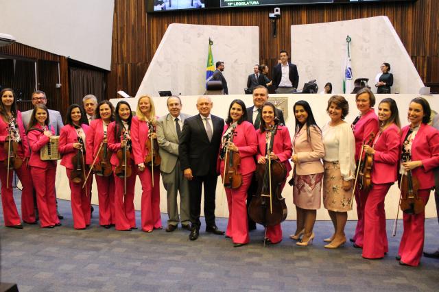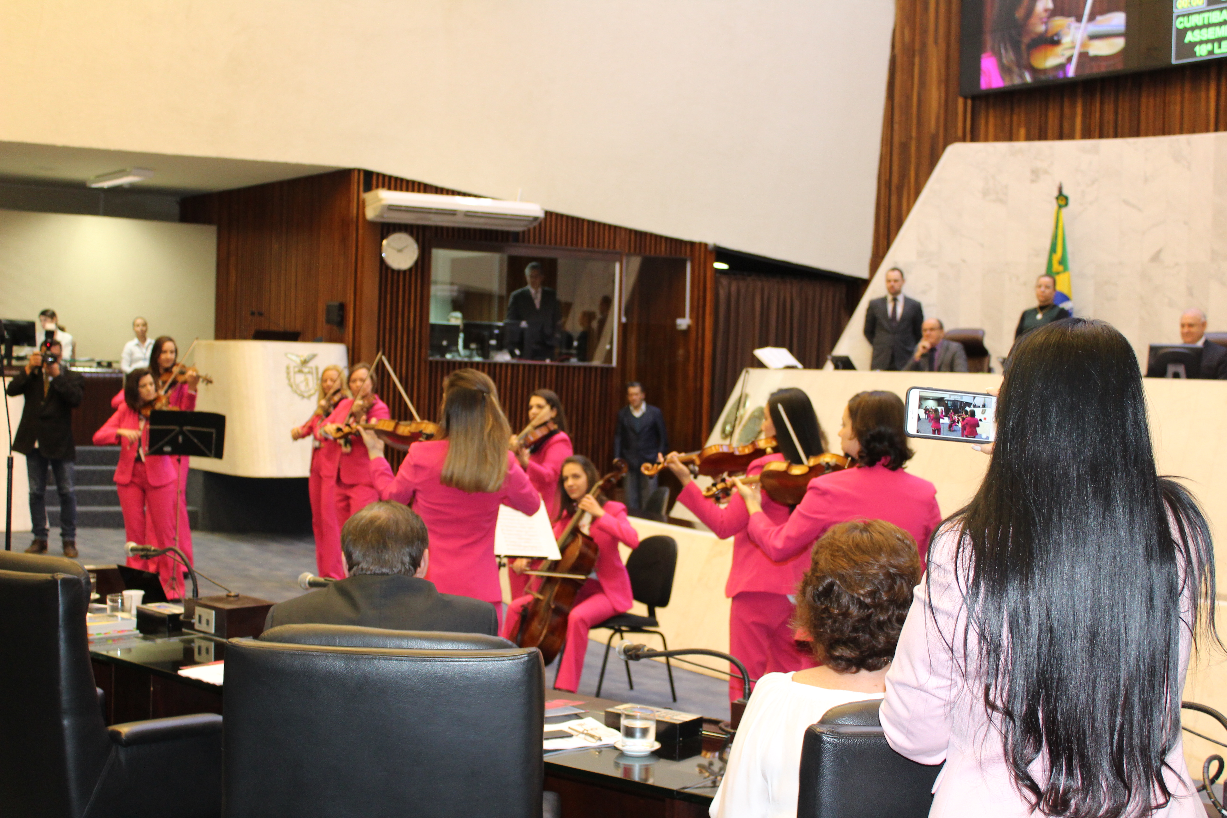 Outro momento do encerramento, foi o presente que o presidente da Casa, Ademar Traiano, reservou uma surpresa para a bancada feminina e para as servidoras da Casa: uma apresentação da Orquestra Ladies Ensemble, criada em 2008 com a direção da violista Fabíola Bach Akel. O grupo executou o primeiro movimento da “Primavera” de Vivaldi e a “Milonga para as Missões”, com a participação da acordeonista Maryanne Francescon. A orquestra é formada exclusivamente por mulheres e conta com a colaboração de musicistas das principais orquestras paranaenses. Em conjunto com a Unicultura – Universidade Livre da Cultura, sob a direção de Ricardo Trento, promove o Concerto das Rosas, que percorre o estado com a finalidade de formação de plateia para música erudita, com a regência do maestro Alessandro Sangiorgi. Nos meses de outubro e novembro a renda das apresentações é revertida em favor da Associação dos Amigos do Hospital de Clínicas.