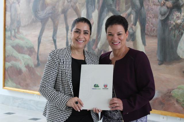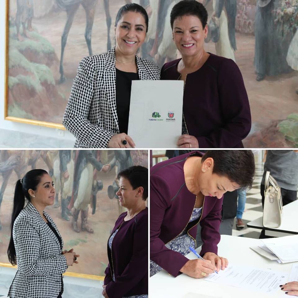 A deputada estadual cantora Mara Lima (PSC) participou da cerimônia de assinatura de convênios com municípios paranaenses para liberação de recursos, dentre eles o de Pinhais, que através de emendas da parlamentar, recebeu o valor de R$ 3.815.081,347 milhões de reais, realizada no Salão de Atos do Palácio Iguaçu, na manhã desta segunda-feira (07/05).